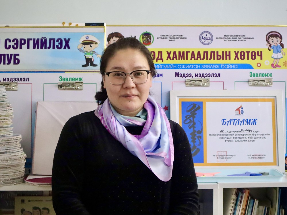 - Оролцооны клубын хүүхдүүд маань сургуулийн хамгийн сайн ёс зүйтэй багшаар намайг тодруулчихсан байсан. Хүүхдүүдэд илүү ойр дотно байдаг болохоор тэгэж санагддаг байх. Багш, нийгмийн ажилтан хүн бол хамгийн ёс зүйтэй байх ёстой учир үүнийг хатуу чанд баримталдаг. Үг, үйлдлээ хянаж, зөв хүн байх талаас үлгэрлэж байх ёстой. Яагаад гэвэл хүүхдүүд биднийг 100 хувь шил мэт харж байдаг.