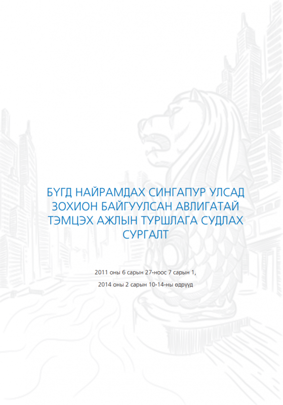 Бүгд Найрамдах Сингапур Улсад зохион байгуулсан авлигатай тэмцэх ажлын туршлага судлах сургалт (2011. 2014 )